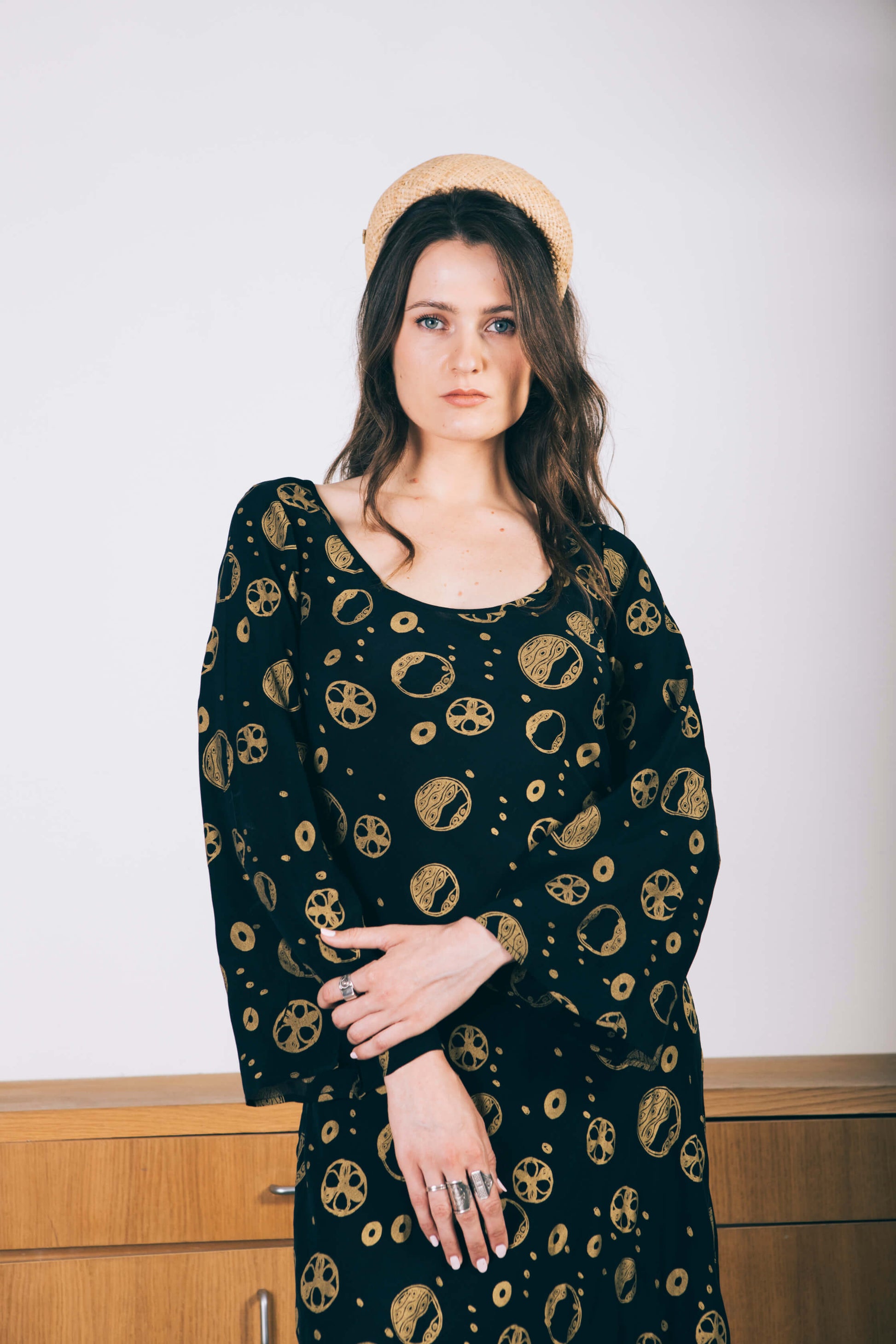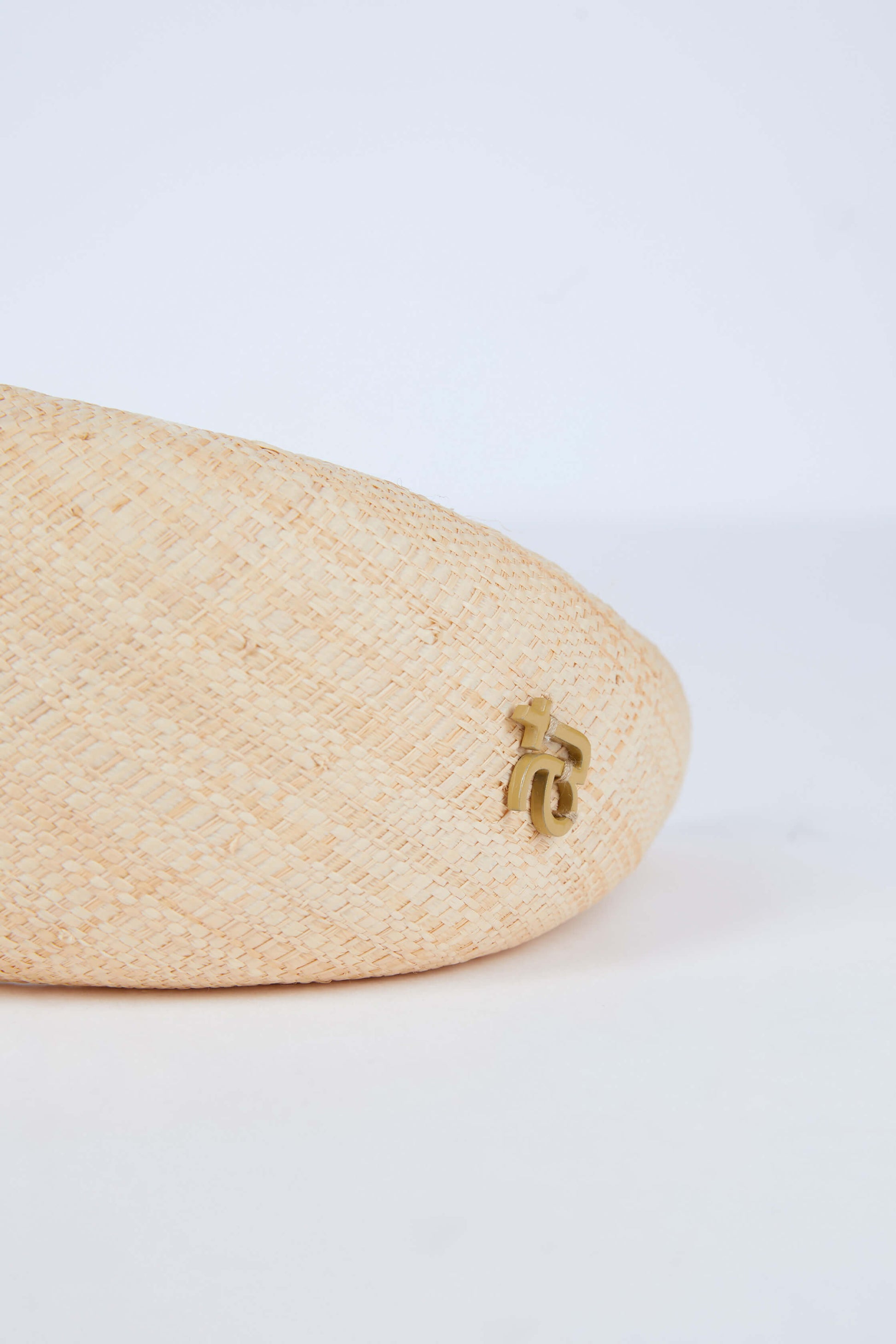 The natural headband is decorated with a metal Maison at.hats rivet.
